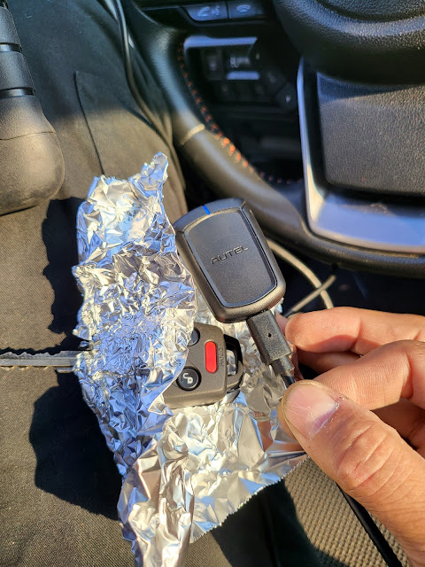Turn on ignition with tin foil around the key you cut and the apb112 next to it. Verify you did it right if the car can start.